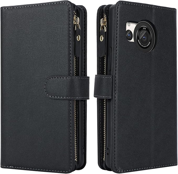 Pelanty for SHARP AQUOS R8 縄掛けケース手帳型 SH-52D 携帯カバー 肩掛け斜めがけ ショルダー 合成皮革+TPU マグネット aquos r8 財布型カバー ICカード お札入れ小銭入れ大容量 収納ポケット スタンド機能 シャープ アクオスR8 ストラップ付き 落下防止 耐衝撃 全面保護(肩縄付き-ブラック)