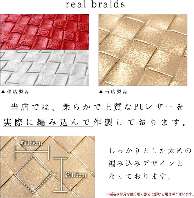 【AQUOS R8 pro SH-51D 専用 手帳型ケース】柔らかで上質なPUレザーを実際に編み込んで作製しております。しっかりとした編み込みデザインで長くお使い頂けます