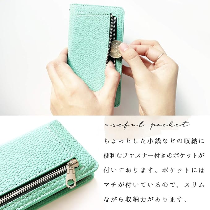 【ミニマリストのための財布機能が付いた手帳型ケース】小銭入れ、紙幣も折って入れられるお札入れとして、ちょっとした現金が必要な場面に対応。カード収納ポケットも付いて、カード決済、スマホ決済、両方使えて便利。小さい財布付きスマホケースでお支払いをよりスマートに。