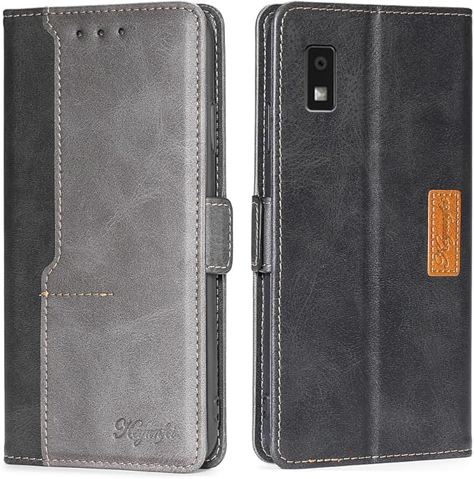 For AQUOS Wish 3ケース 手帳型 Wish 3 SH-53D A302SH 手帳 ケース マグネット式スタンド機能 カード収納 軽量 落下防止 衝撃吸収 全面保護 財布型 折り畳み式 横置き機能 カメラレンズ保護 携帯カバー AQUOS Wish 3 スマホケース (ブラック+グレー)