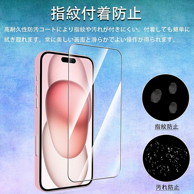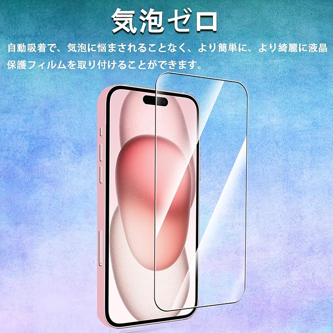 【2枚セット保護フィルム】対応 iPhone 15 / iPhone 15 Pro 用のガラスフィルム 全面保護 強化ガラス 液晶保護フィルム 対応 iPhone 15 / iPhone 15 pro 用の対応 ガラスフィルム【自動吸着/硬度9H/貼り付け簡単/干渉しない/気泡ゼロ】【簡単貼り付け】