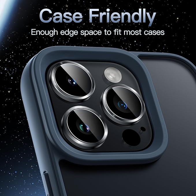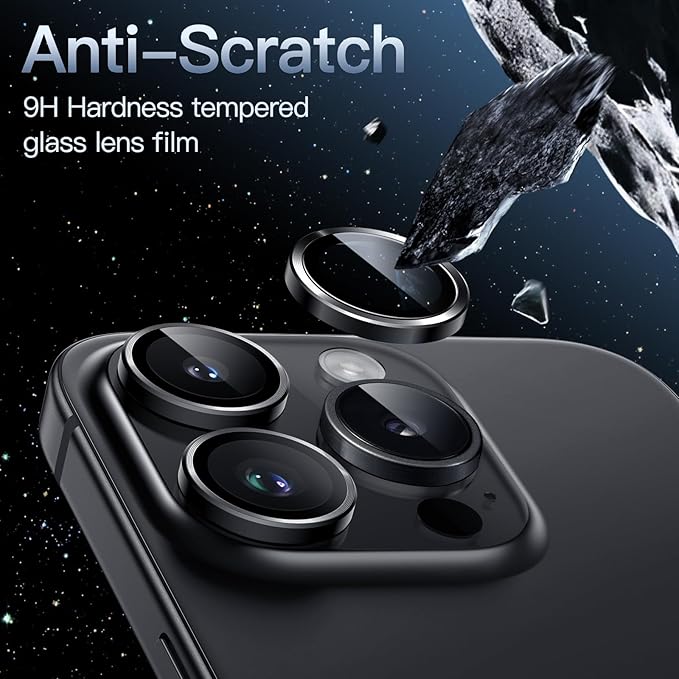 JETech カメラレンズフィルム iPhone 15 Pro 6.1インチ/iPhone 15 Pro Max 6.7インチ用 9H強化ガラス 個別の金属リングカバー HDクリア 1セット(スペースブラック)