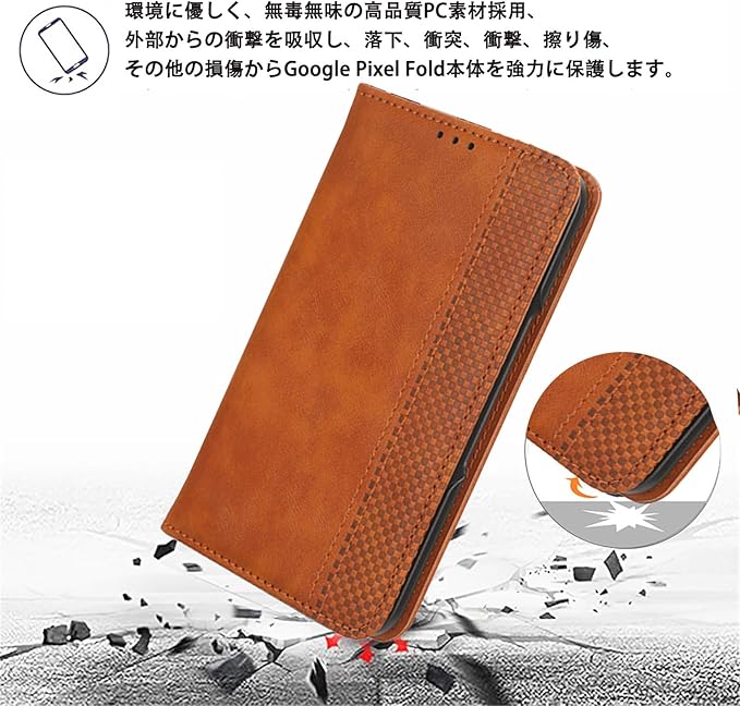 Miimall Google Pixel Fold ケース 手帳型 pixel fold ケース 【スタンド機能】グーグル ピクセル Fold 用 カバー PU素材 耐衝撃 pixel fold カバー ストラップホール付き 横開き レザー マグネット式(ブラウンク)
