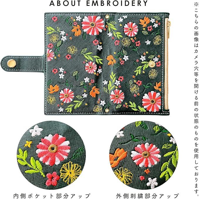 AQUOS wish 3 SH-53D A302SH SH-M25 用 ケース カバー 手帳型 wish3 手帳型ケース SH53D SH-53Dケース SH-53Dカバー SH-M25ケース SH-M25カバー スマホケース スマホカバー おしゃれ花刺繍 ダークグリーン