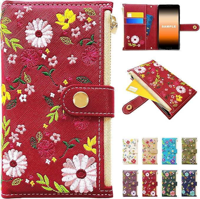AQUOS wish 3 SH-53D A302SH SH-M25 用 ケース カバー 手帳型 wish3 手帳型ケース SH53D SH-53Dケース SH-53Dカバー SH-M25ケース SH-M25カバー スマホケース スマホカバー おしゃれ花刺繍 レッド