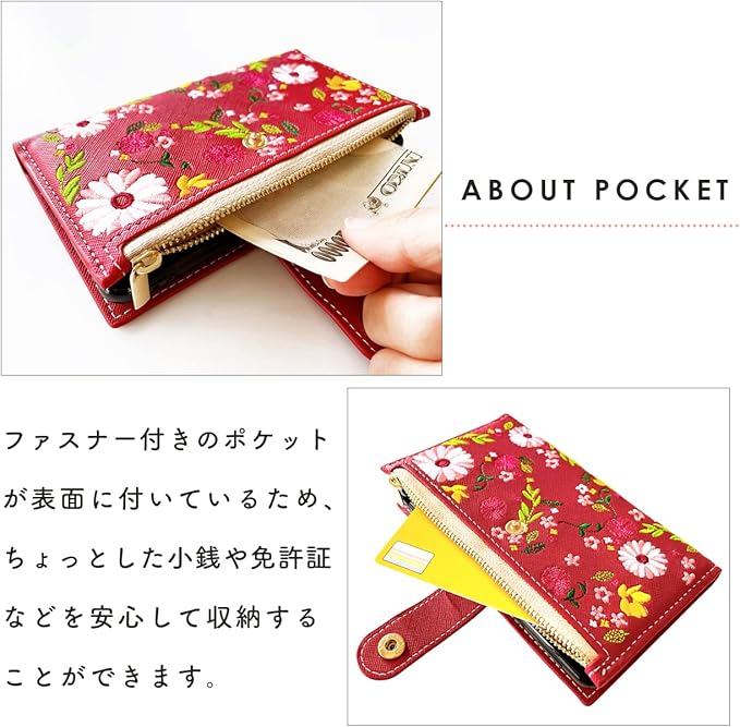 AQUOS wish 3 SH-53D A302SH SH-M25 専用 手帳型ケース。小銭や免許証等の収納に便利なファスナー付きの手帳型ケースです。上品なサフィアーノ生地に、色鮮やかな花柄の刺繍を施しています。