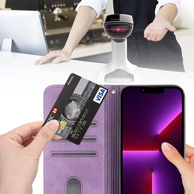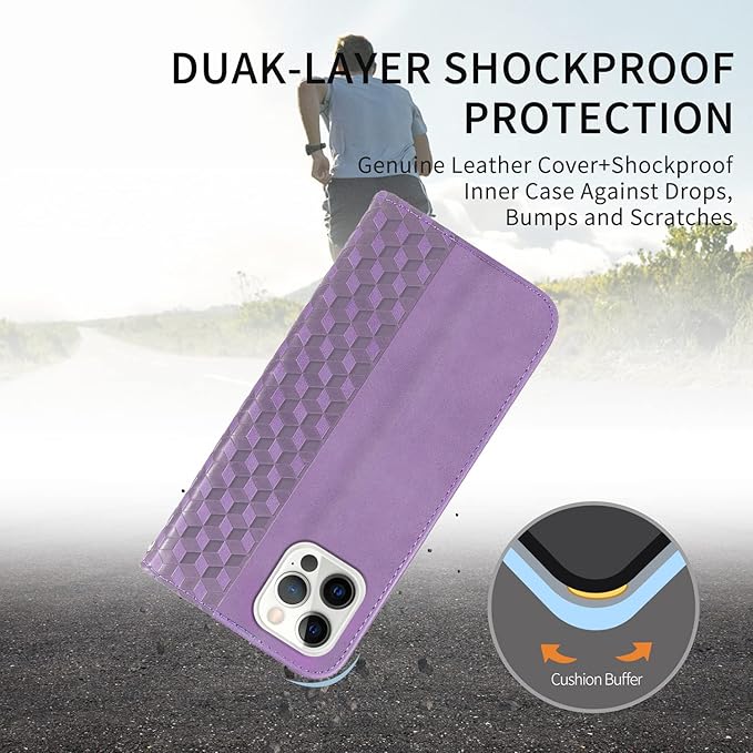 Gedurya iPhone 15 Pro Max ケース 手帳型 アイフォン 15 pro max ケース ひし形柄 iphone15promax ケース 手帳型 マグネット式 スタンド機能 アイフォン15promax 携帯カバー カード収納 財布型 iphone 15 pro max スマホケース 全面保護 耐衝撃 6.7インチ対応 - パープル