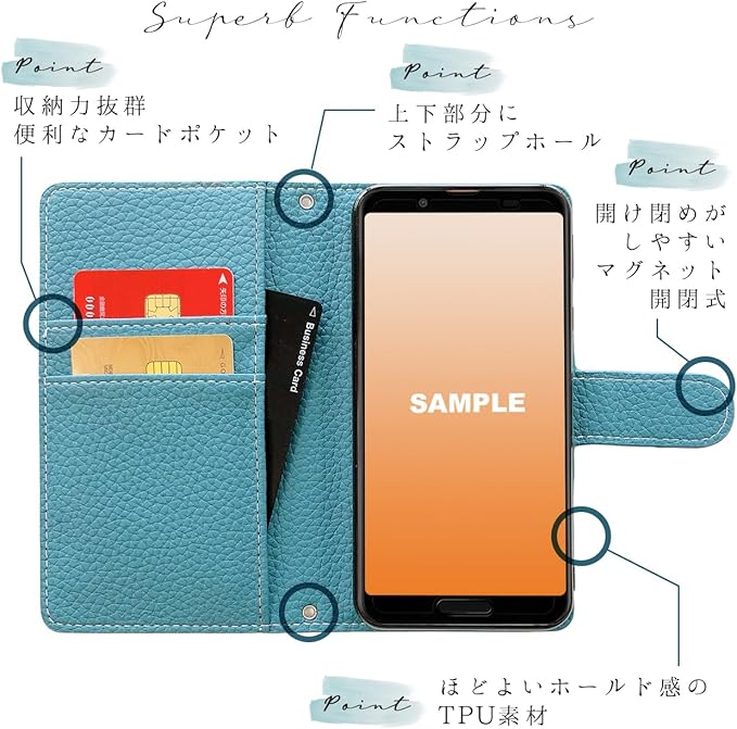 Xperia 10V SO-52D SOG11 A302SO 専用 ケース 手帳型 カバー 10 v so52d XQ-DC44 xqdc44 手帳型ケース スマホケース スマホカバー 手帳 エクスペリア テン マーク ファイブ SO-52Dケース SOG11ケース ハンドあり上品 【NB】 ターコイズブルー