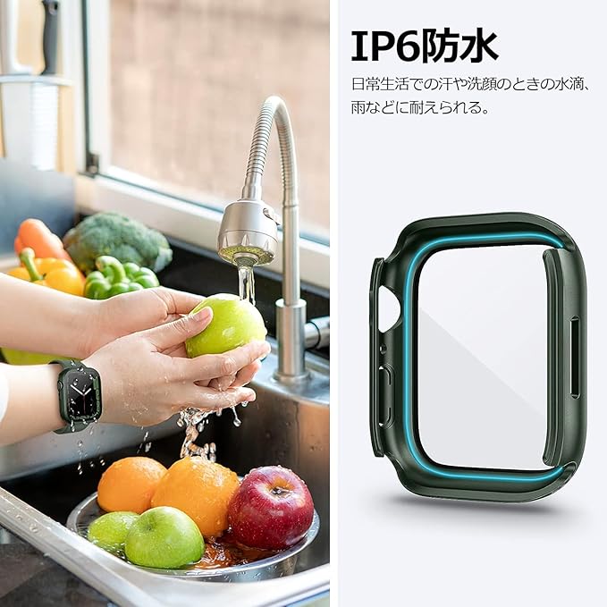 TALENANA for Apple Watchケース 45mm 44mm 41mm 40mm 【3 in 1防水設計】 アップルウォッチ液晶保護フィルム+防水保護ケース+背面ケースの3 in 1デザイン Series 8/7/6/SE/5/4高タッチ感度 PC素材 全面保護 衝撃吸収 (Series 9/8/7,45mm,グリーン)
