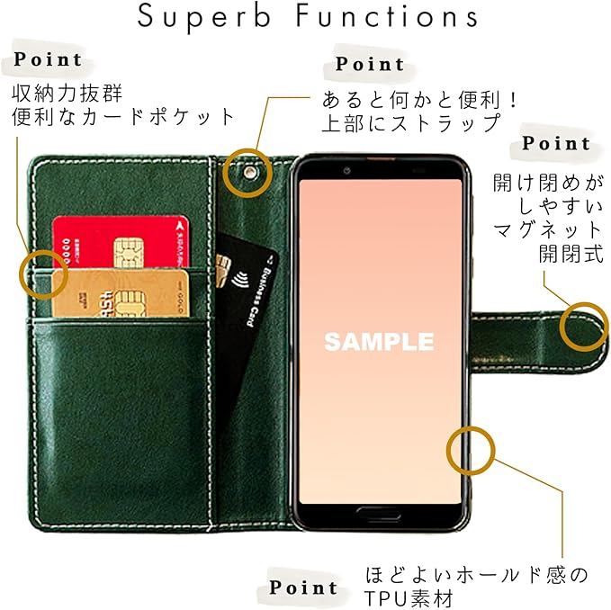 AQUOS R8 pro 専用 SH-51D ケース 手帳型 カバー SH51D SH-51Dケース SH-51Dカバー SH51Dケース SH51Dカバー AQUOSR8pro アクオスR8 プロ 手帳型ケース スマホケース 手帳 部長 ダークグリーン (darkgreen)