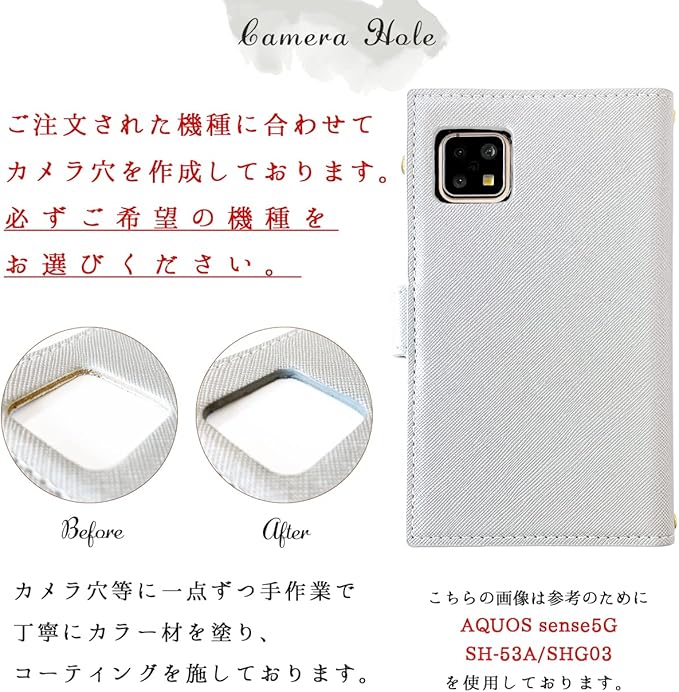 手帳部分と内側ケース部分は接着しておりますが、強くめくったりひっぱると剥がれる場合がございます。内側のケースは黒TPUを使用し、本体をしっかりカバーします。電源ボタンや音量ボタンなどは、黒TPUケースの上から押す仕様となっております。カメラ部分などは機種に合わせた開口部が開いております。