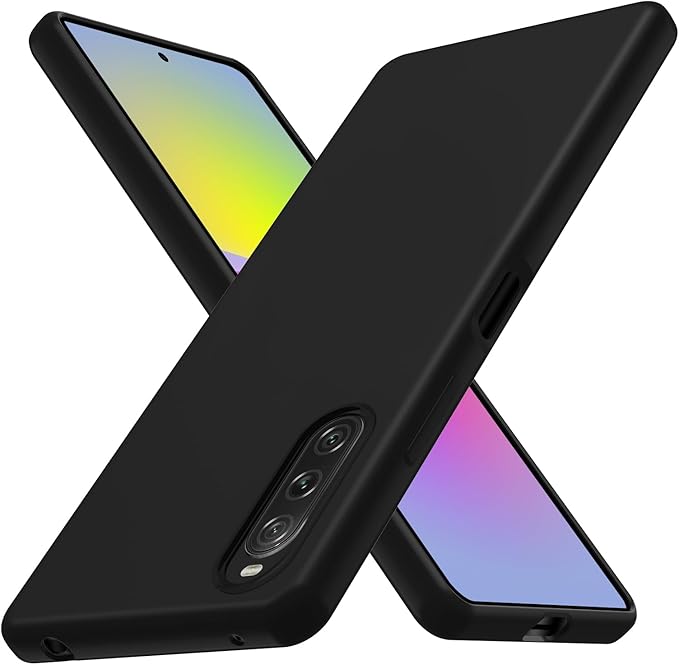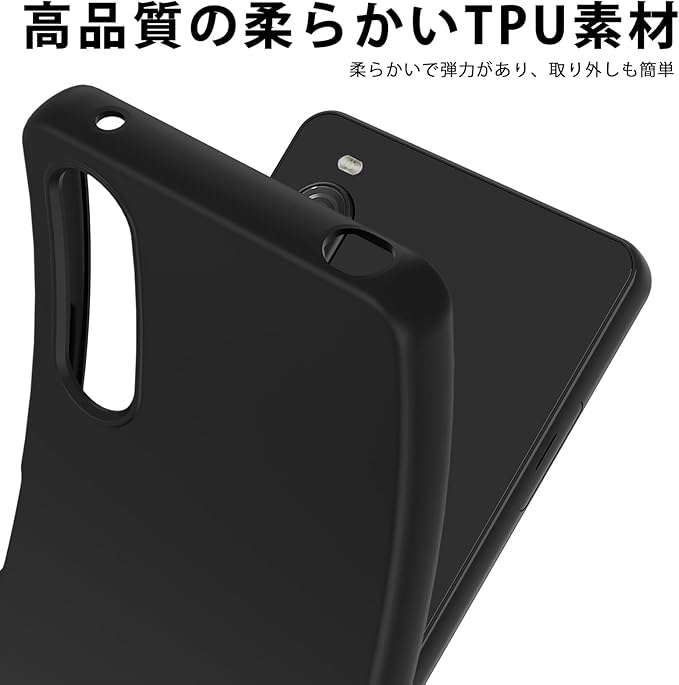 Xperia 10 V ケース シリコン 耐衝撃 柔軟 SO-52D | SOG11 カバー 人気 薄型 衝撃吸収 携帯カバー ストラップホール付き ワイヤレス充電 軽量 手触り良い 指紋防止 滑り防止 (黒)4-xp 10v-01