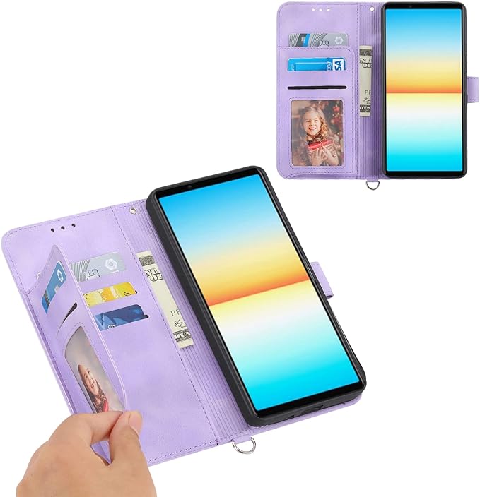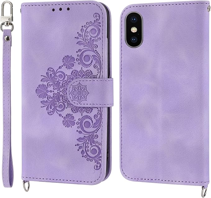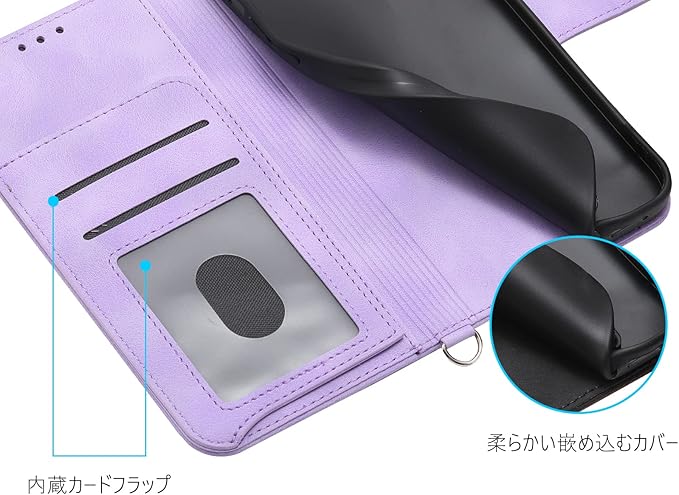AQUOS wish3 スマホケース 手帳型 ショルダー 押し型の花柄 肌らしい手触り 2023モデル 5枚カード収納 AQUOS wish3 ソフトレザーケース 首掛け 肩掛け 短いストラップと長いストラップ付き AQUOS wish3 SH-53D 手帳型携帯ケース スタンド機能 マグネット付き アクオスウィッシュ3 手帳型ケース 耐衝撃 多機能 全面保護 女性手帳型ケース 藤色