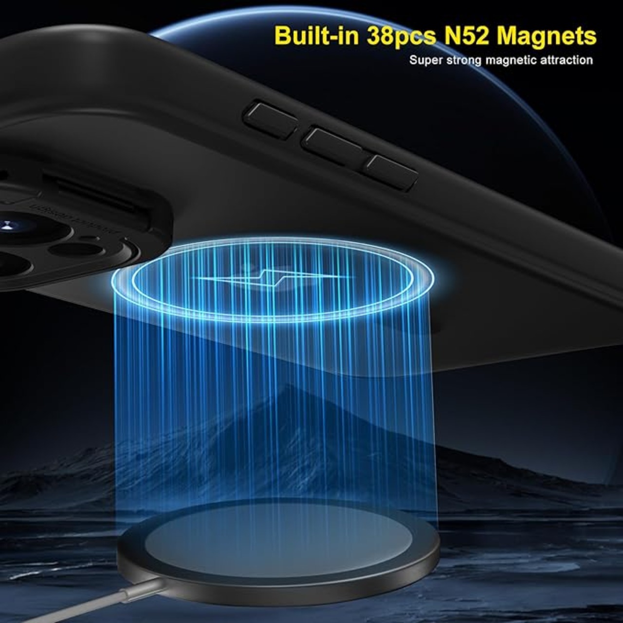 iPhone 15 Pro対応ケース memumi レンズスタンドとマグネット搭載ケース TPUバンパー 滑り止め ワイヤレス充電対応 軍事レベル落下保護 耐衝撃 すり傷防止 6.1インチ