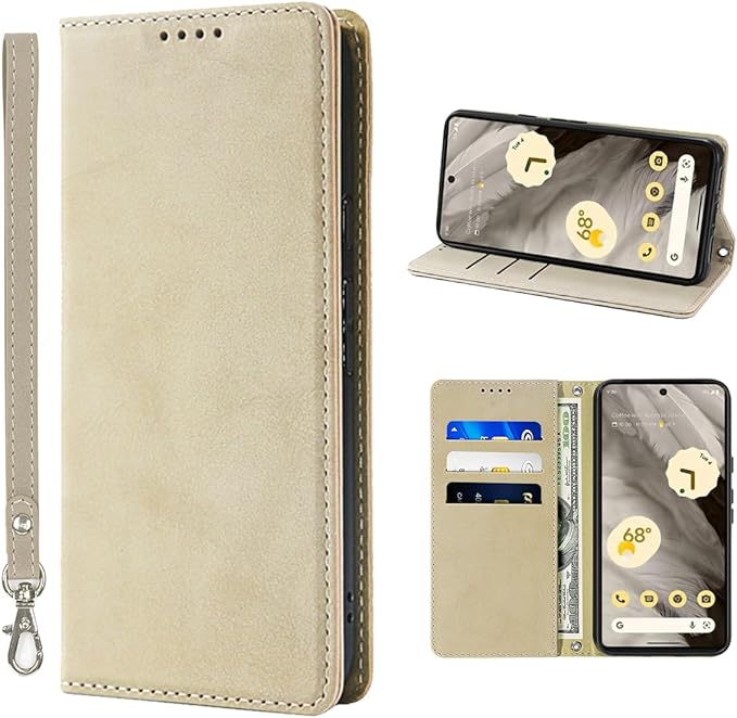 NanHou Google Pixel 7A 5G ケース 手帳型 つや消し レザー スタイル質感 カバー 手帳型 耐衝撃 保護カバー 内蔵マグネット 財布型 携帯カバー カードポケット スタンド機能 リストバンド Google 7A - あまいろ