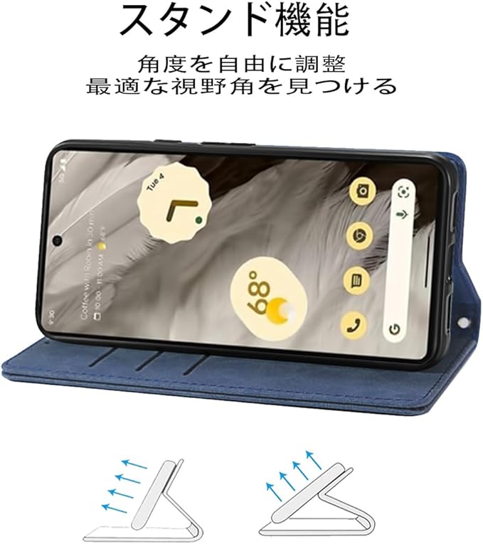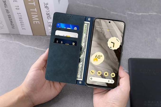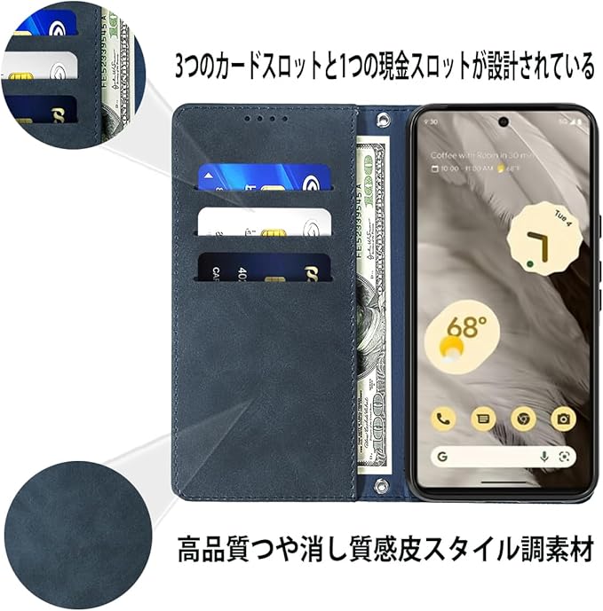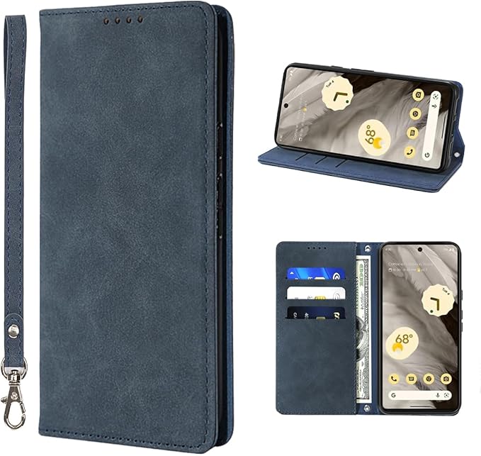 NanHou Google Pixel 7A 5G ケース 手帳型 つや消し レザー スタイル質感 カバー 手帳型 耐衝撃 保護カバー 内蔵マグネット 財布型 携帯カバー カードポケット スタンド機能 リストバンド Google 7A - ダークブルー