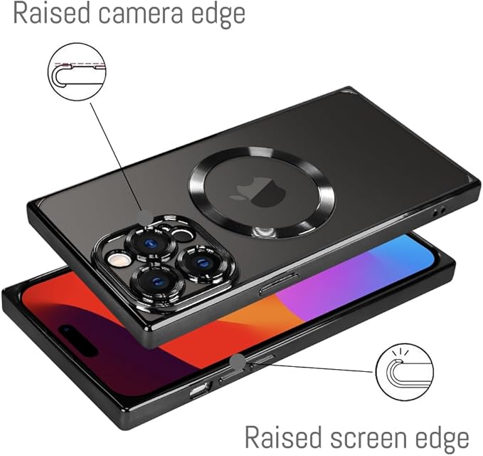 iPhone 15 Pro Max用LSLケース [MagSafe対応] ソフト TPU バンパー 落下防止 傷防止 耐衝撃 保護 スリム ラグジュアリー メッキ クリア 磁気カバー レディース ガールズ メンズ - ブラック