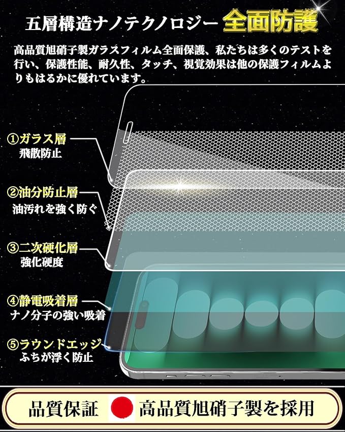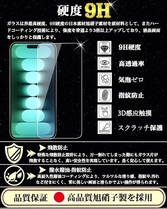 iPhone15 ProMax ガラスフィルム iPhone 15ProMax 強化ガラス 保護 フィルム【ガイド枠付 2枚入り】日本旭硝子素材製 硬度9H 気泡ゼロ 飛散防止 指紋防止 撥水撥油 貼り付け簡単 自動吸着 全面保護 アイフォン15 ProMax 液晶保護 フィルム 6.7インチ
