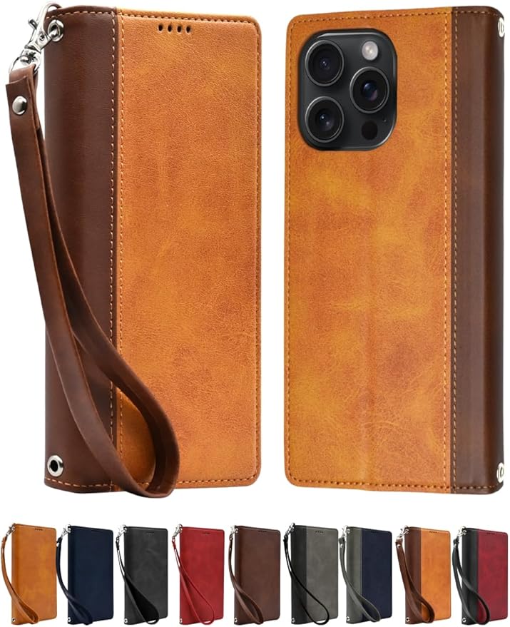 シズカウィル iPhone 15 Pro Max ケース カバー 手帳型 本革調 レザーケース イエローブラウン ブラウン 1個入り