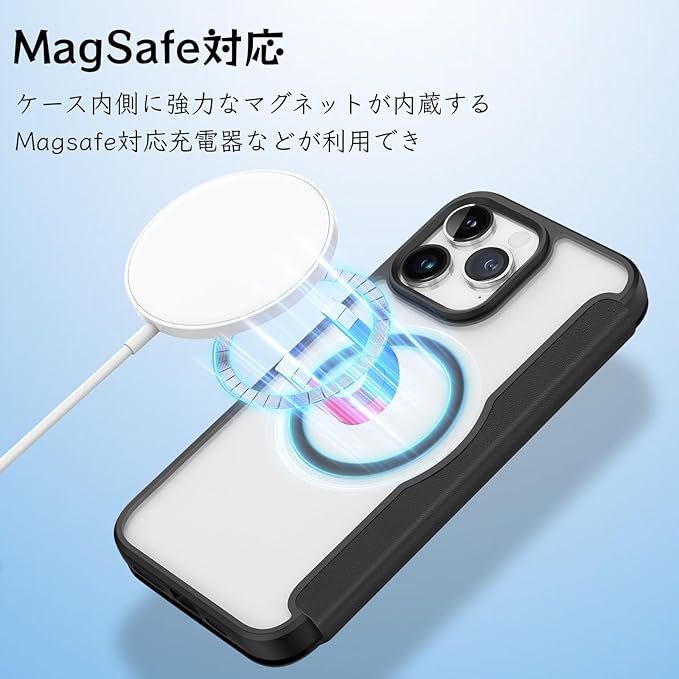 【MagSafe機能対応】バックパネルにマグネットが内蔵されており、MagSafe対応充電器および各種MagSafe専用アクセサリーが誤差なくくっつきます。