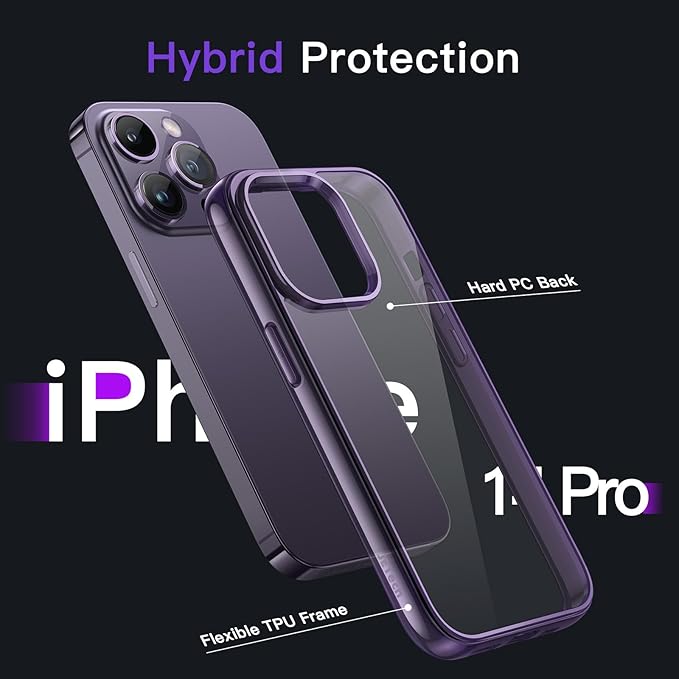 JETech iPhone 14 Pro 6.1インチ用 黄ばみなし 保護ケース 衝撃吸収 バンパーカバー 傷つけ防止 クリアバック (ディープパープル)