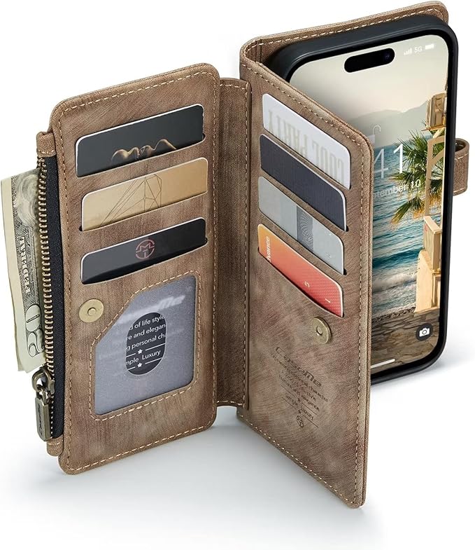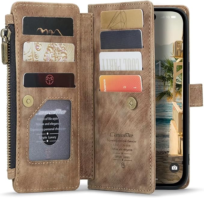 Sursuni iPhone 15 ケ用 ケース 手帳型 カード収納 小銭入れ アイフォン 15 カバー 財布型 ストラップ 付き カードポケット付き 収納ポケット マグネット吸着 横置き スタンド機能 スト耐衝撃 ラップホール付き