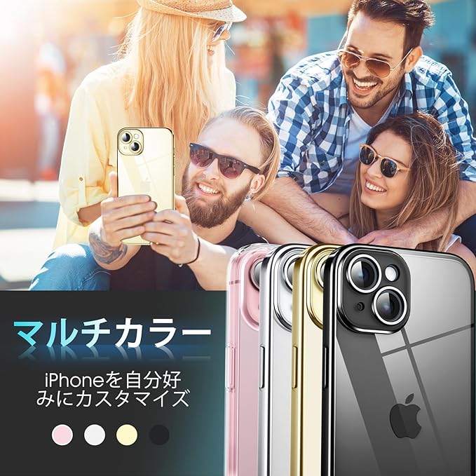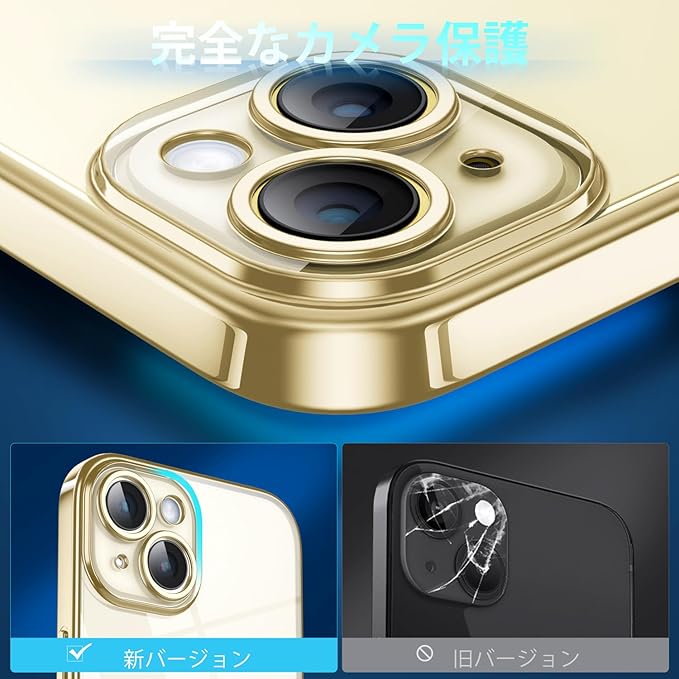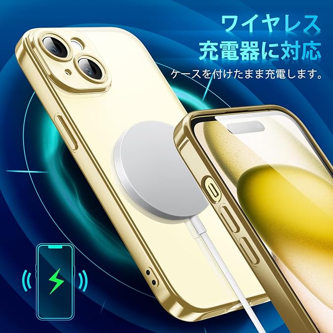 Supdeal クリスタル クリアな透明電話ケース対応iPhone 15,[カメラレンズ保護][シリコン高精細透明][黄変しない][極薄でソフトな素肌感覚][耐衝撃]アイフォン 15 スマホカバー衝突防止エアバッグ付き,6.1インチ(ゴールド)