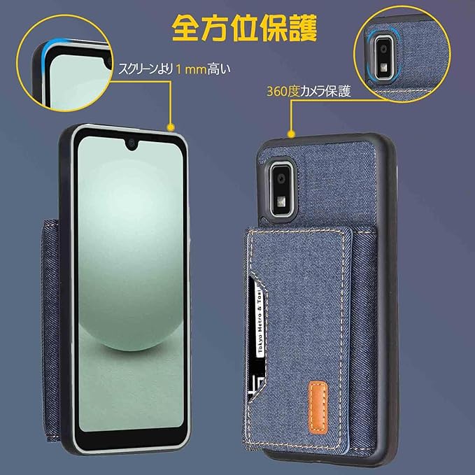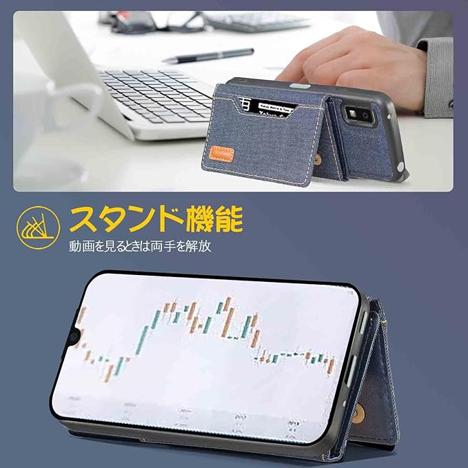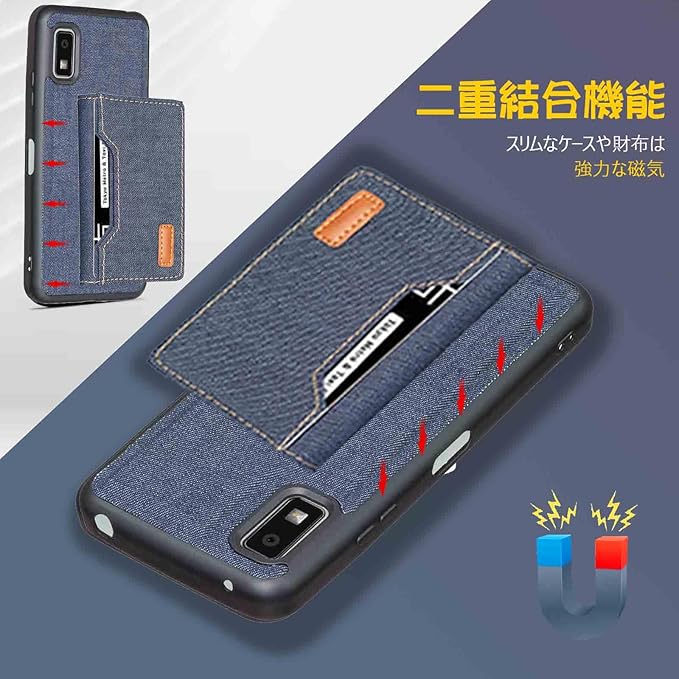 【Aqier】デニム財布ケース SHARP AQUOS wish3 / SH-53D / A302SH / A303SH 分離式 両用 プレミアムデニム生地 電話ケース (ダークブルー) シャープ アクオス ウィッシュ スリー ドコモsh53d ワイモバイルa302sh ソフトバンクa303sh 楽天モバイル アクオスwish3 三つ折り 付き縄掛け バックカバー シャープwish3 BLUE