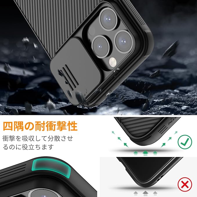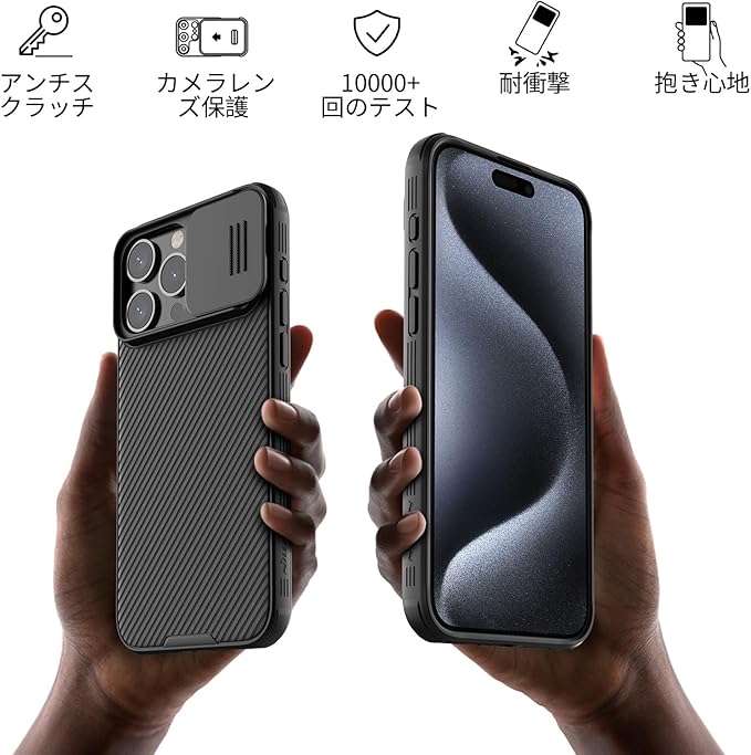 Nillkin iPhone15 Pro ケース レンズ保護 滑り止め 超耐磨 耐衝撃 6.1インチ 專用スマホケース 【TPU+PC】あいふぉん15 プロケース 軽量 スマホケース( 2024新型)(For iPhone 15 Pro (6.1 inch), black)