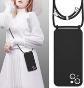 UEEBAI 対応 iPhone 15 用の ケース シリコン 調節可能なケース 肩がけ 首掛け 紐付き ストラップホール付き 薄型 軽量 耐衝撃 カバ− 落下防止 紛失防止 ショルダー バンパー - ブラック