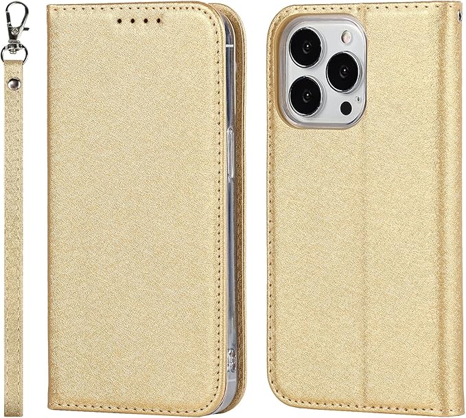Eastwave アイフォン For iPhone 15 Pro ケース For iPhone15pro ケース 手帳型 For iPhone 15pro caseストラップ付き PU皮革 明るい色 内蔵マグネット 携帯カバー カードポケット スタンド機能 便利 ゴールド