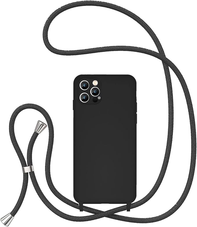 UEEBAI 対応 iPhone 15 Pro Max 用の ケース シリコン 調節可能なケース 肩がけ 首掛け 紐付き ストラップホール付き 薄型 軽量 耐衝撃 カバ− 落下防止 紛失防止 ショルダー バンパー - ブラック