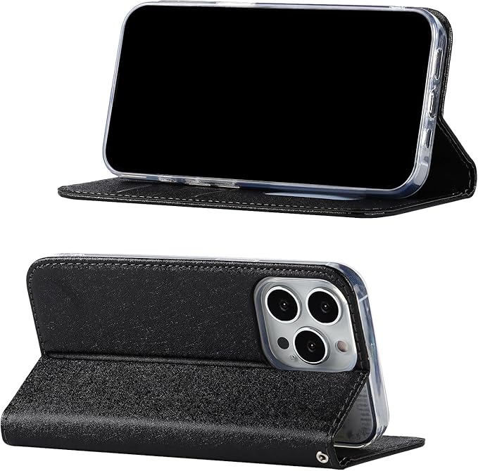 Eastwave アイフォン For iPhone 15 Pro ケース For iPhone15pro ケース 手帳型 For iPhone 15pro caseストラップ付き PU皮革 明るい色 内蔵マグネット 携帯カバー カードポケット スタンド機能 便利 ブラック