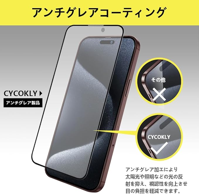 CYCOKLY iPhone 15 pro max(6.7インチ)ガラスフィルム アンチグレア 強化ガラス 液晶保護フィルム さらさら感 反射防止 指紋防止 ガイド枠付き