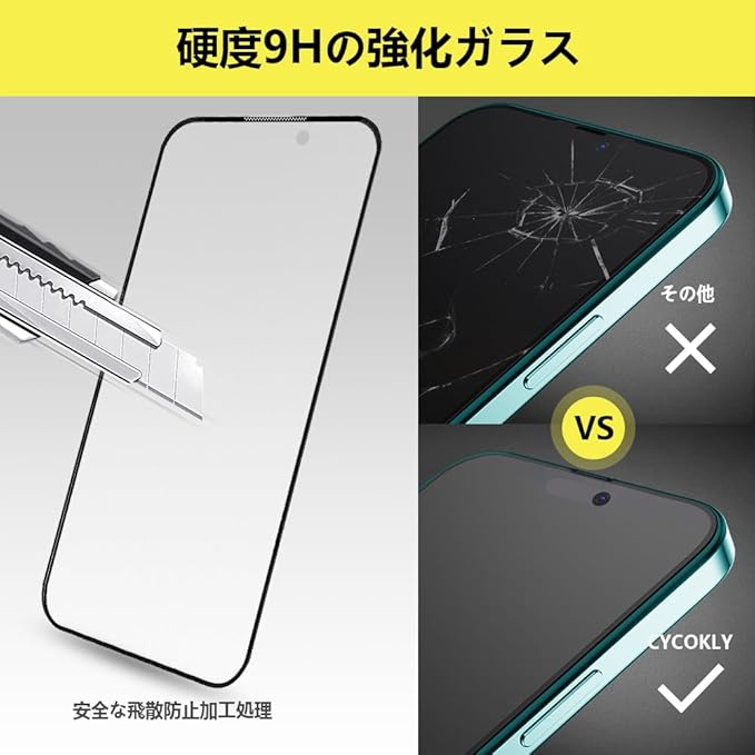 CYCOKLY iPhone15 plus/ iPhone16 plus用 ガラスフィルム アンチグレア(6.7インチ)【ゲーム 保護フィルム】 2.5D全面保護 日本製素材旭硝子製 反射防止 指紋防止 気泡無し ガイド枠付き アイフォン15/16plus 強化ガラス