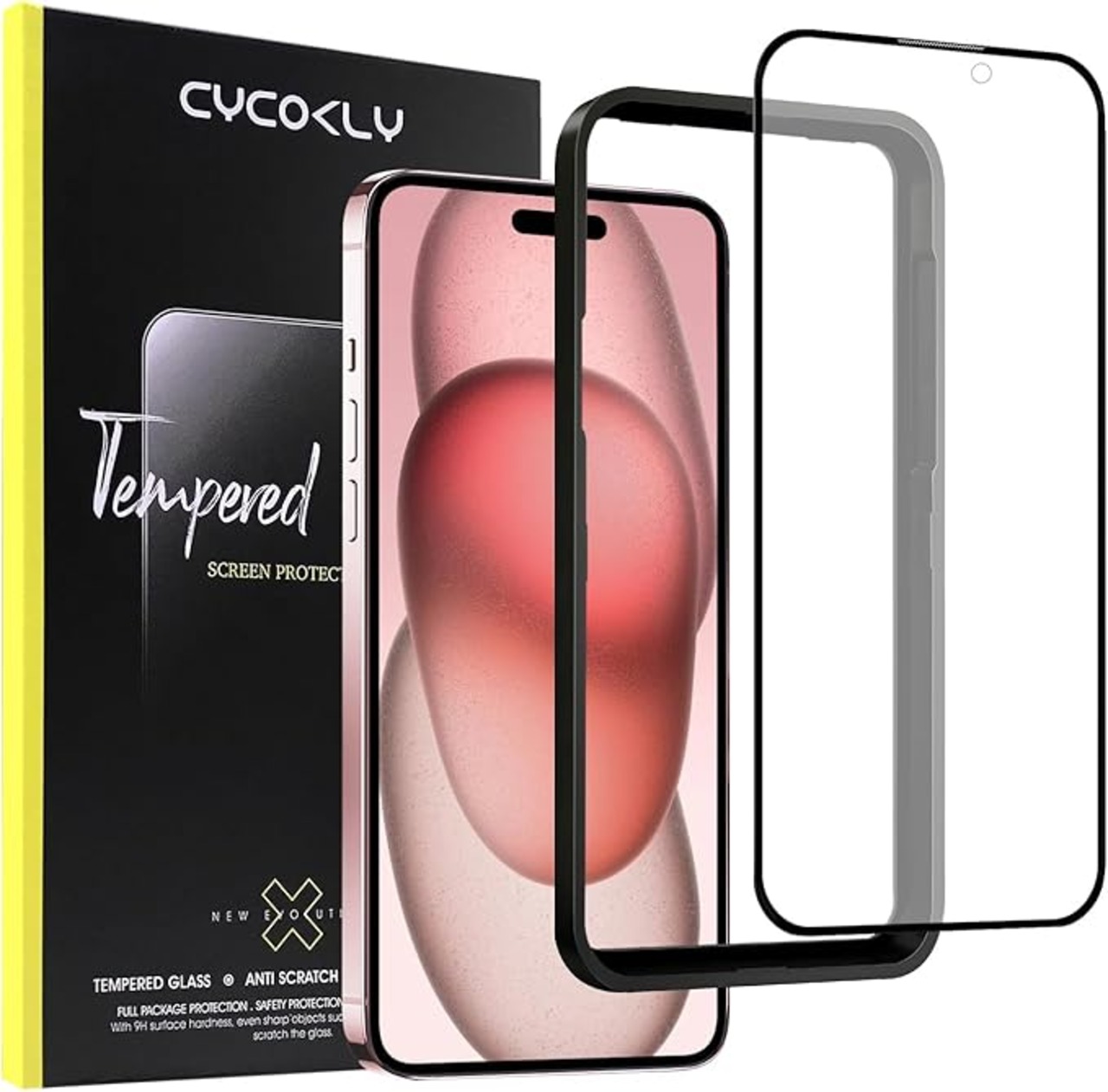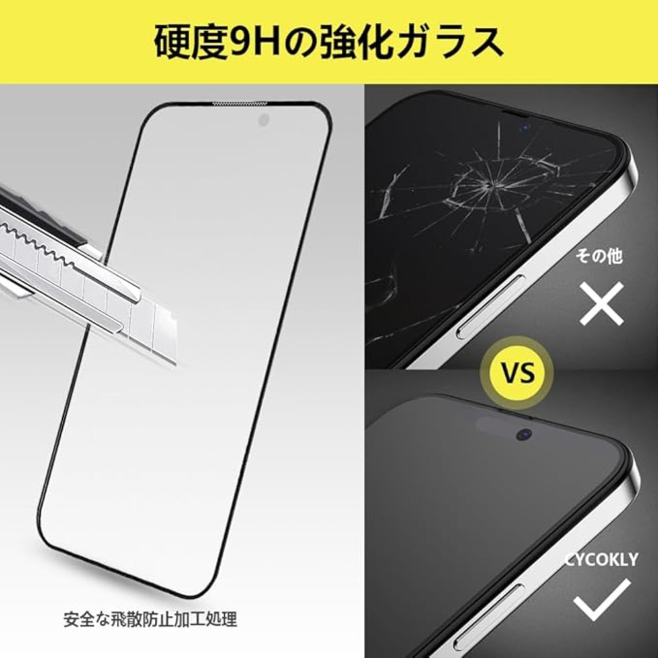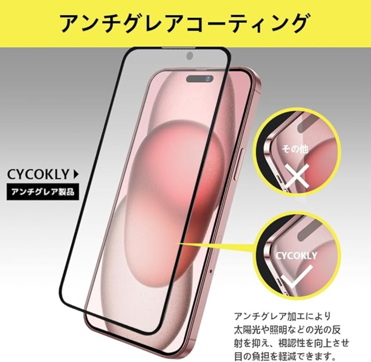 CYCOKLY iPhone15/ iPhone16 ガラスフィルム アンチグレア(6.1インチ)強化ガラス 液晶保護フィルム さらさら感 反射防止 指紋防止 ガイド枠付き
