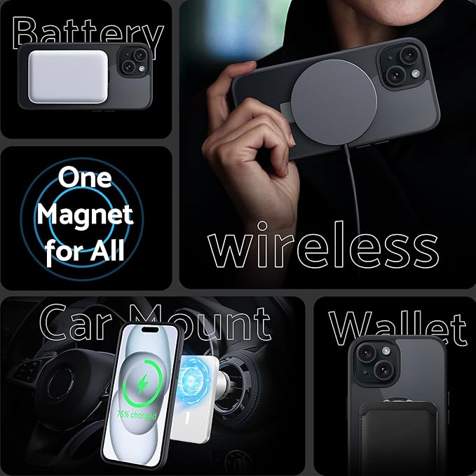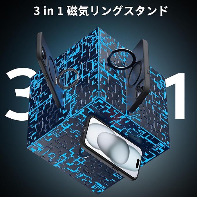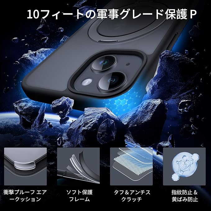 DASFOND iPhone 15 用 ケース [MagSafe 対応] 2023 アップグレード[オールインワン] 米軍MIL規格の落下防止インビジブルリングキックスタンド 半透明マット 電話ケース カバー iPhone 15 6.1 インチ ブラック