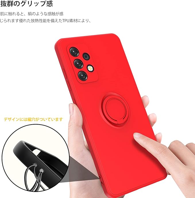 AQUOS wish3 用ケース TPU 耐衝撃 リング シリコンケース 薄型 ソフト 全面保護カバー 指紋防止 リング付き スタンド機能 車載ホルダー対応 360 回転 レンズ保護 ストラップホール付き スリム 軽量 黄変防止 防塵 アクオス ウィッシュ3 用カバー[赤] KC6-240