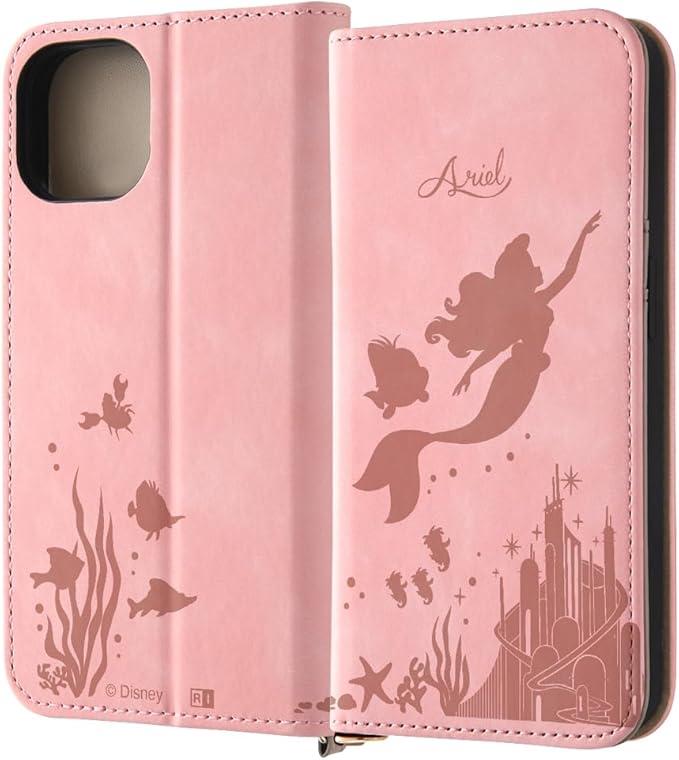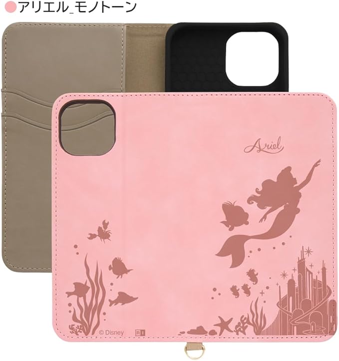 イングレム iPhone 15 ケース ディズニー 手帳型 レザーケース Raffine アリエル_モノトーン
