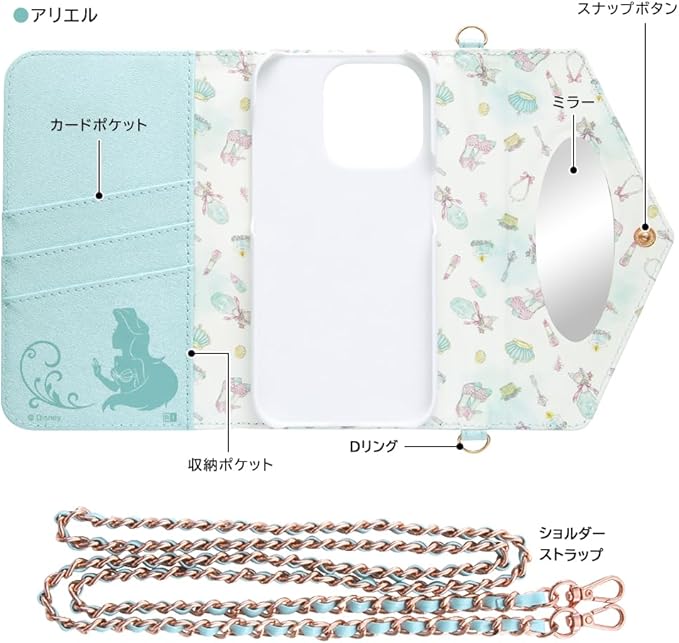 デジタルアルキミスト iPhone 15 Pro ケース ディズニー 手帳型 レザーケース Collet ショルダーストラップ付き アリエル