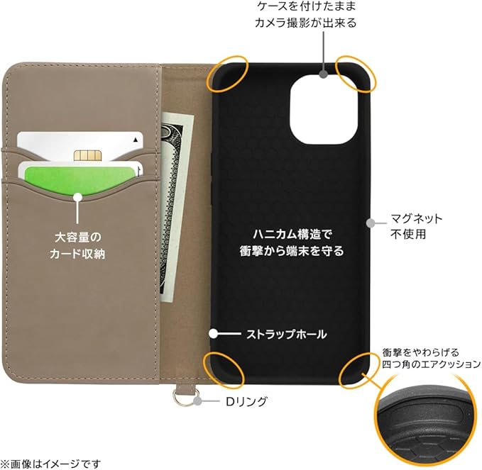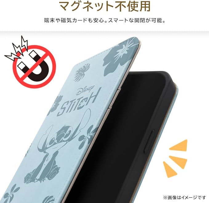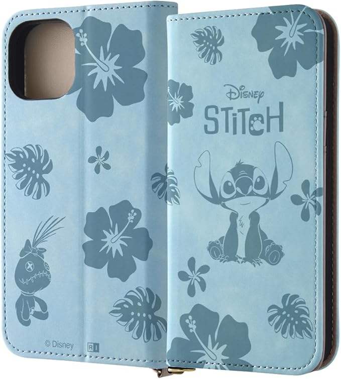 イングレム iPhone 15 ケース ディズニー 手帳型 レザーケース Raffine スティッチ_モノトーン