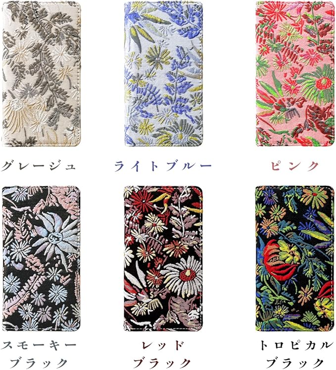 【 オリエンタルな雰囲気が魅力 】少し凹凸のあるボタニカルジャガード生地を使用した手帳型ケースになります。印刷ではなく織生地ですので摩擦や引っ掛かり等にお気を付け下さい。
