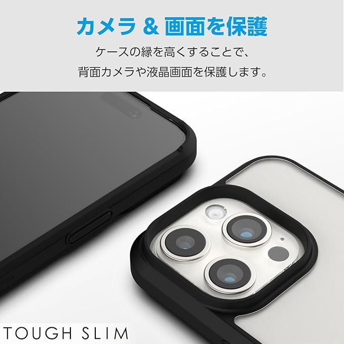 エレコム iPhone15 Pro ケース TOUGH SLIM ガラスフィルム付属 360度保護 耐衝撃 衝撃吸収 薄型 軽量 ストラップホール付き [全周配置のエアークッションが衝撃を吸収] ブラック PM-A23CTS3BK