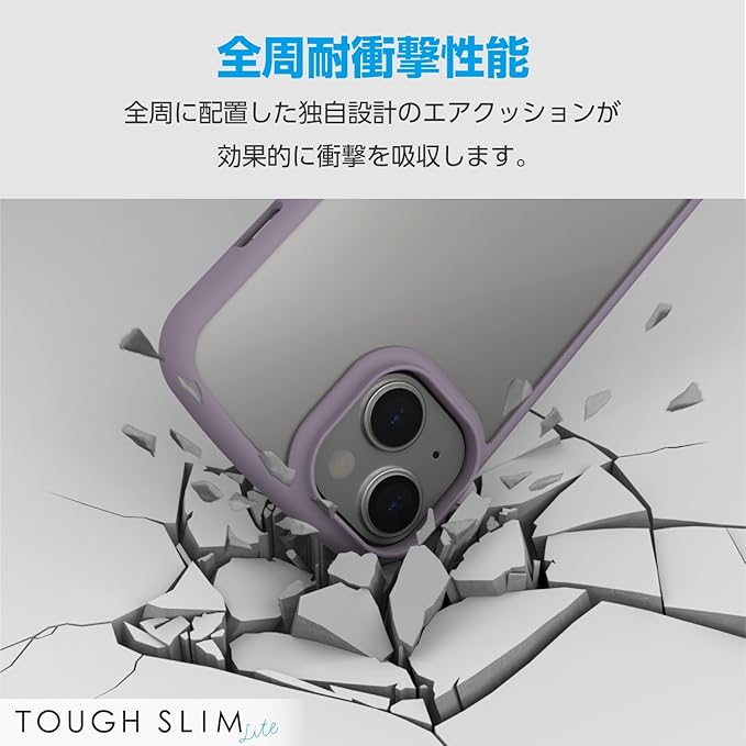 エレコム iPhone15 ケース TOUGH SLIM LITE 半透明 耐衝撃 衝撃吸収 薄型 軽量 指紋防止 ストラップシート付き ストラップホール付き ラベンダー PM-A23ATSLFCSPU