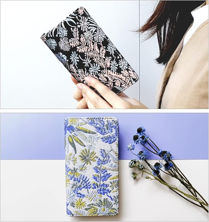 【 オリエンタルな雰囲気が魅力 】少し凹凸のあるボタルジャガード生地を使用した手帳型ケースになります。印刷ではなく織生地ですので摩擦や引っ掛かり等にお気を付け下さい。
