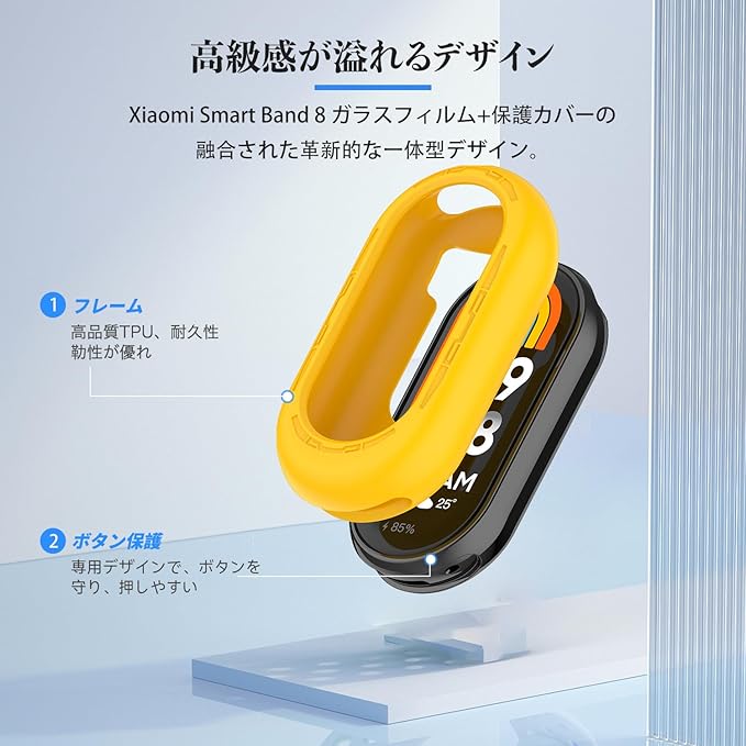 【1枚】Xiaomi Smart Band 8 用 カバー ケース アップルウォッチ保護カバー 一体型 保護【HUKWIMO】 3D全面保護 衝撃から守る 簡単な取り付け 自由な着せ替え 強力なガーディアン スクリーンプロテクター Xiaomi Smart Band 8 対応 (イエロー 黄)