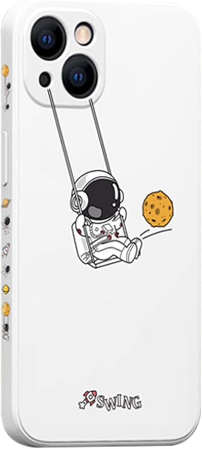【Kunyehdo】 スマホケース iPhone 15 ケース カバー 対応 iPhoneケース 可?い 宇宙飛行士 ぶらんこ swing 白色 ホワイト アニメ 宇宙 人気 おしゃれ 韓国 お洒落 おもしろ かわいい 薄型 スリム 耐衝撃 軽量 惑星 液体シリコン ソフトケース 携帯ケース (iPhone15 ,SW 白)
