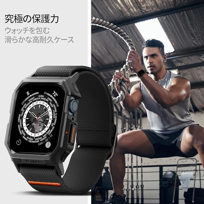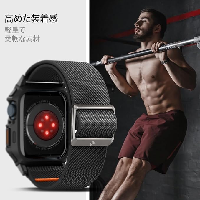 【360° プレミアム保護】 軽量なユニボディフレームはTPU製で、24時間耐久性を実現するスポーティーなリストバンドが採用されています。
