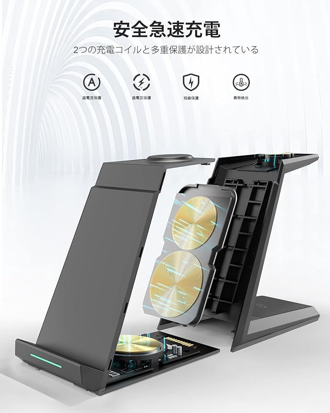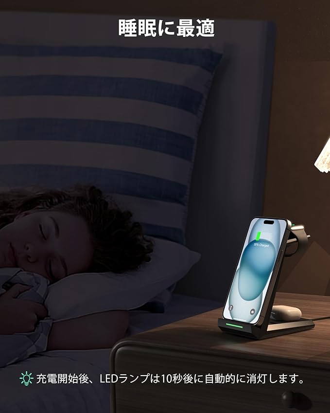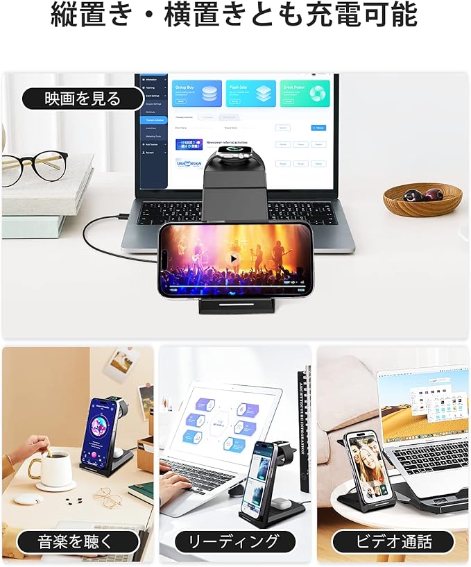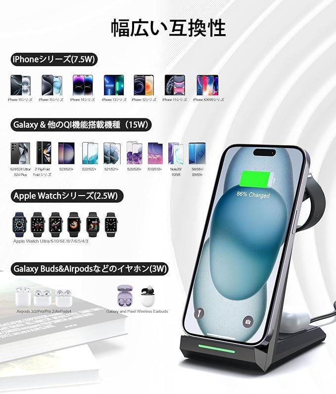 ADADPU 3in1 ワイヤレス急速充電器セット 20Wアダプター付属 3台同時充電 充電スタンド 置くだけ(15W/10W/7.5W) iPhone 16/15/14/13/12 seris・Galaxy S24/S23/S22・AirPods・Apple Watch各機種対応(Qi/PSE認証) テレワーク用品 新生活アイテム 日本語説明書付き 父の日 プレゼント ブラック