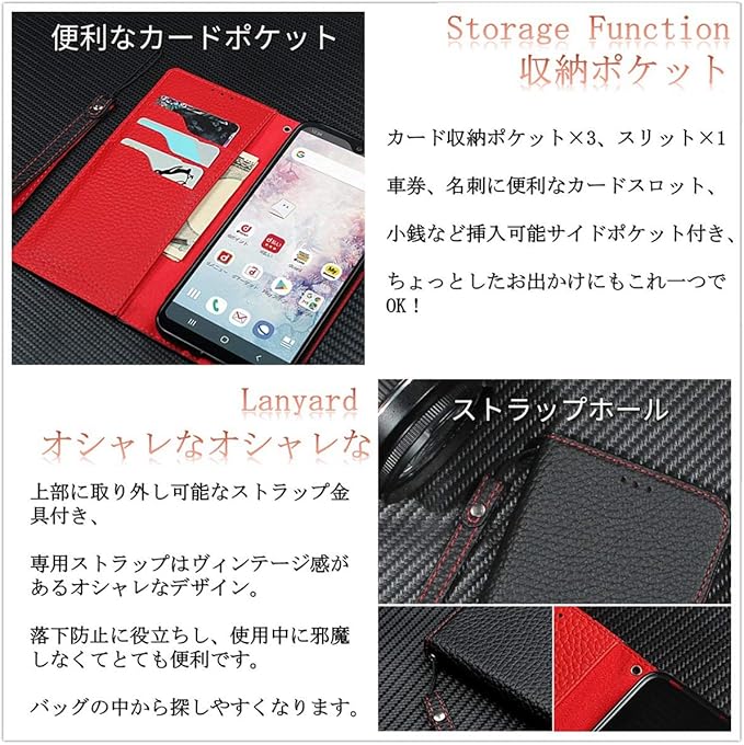 【使い勝手抜群】手帳型カバーの機能が搭載して、内側には三つのカード入れとフリーポケットがつき、カードや定期券の収納に優れていて、横置きにしてスタンドになり、動画視聴がすごく便利なスマホケースです。